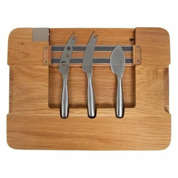 An attractive and practical board Surprise your family and friends with delicious cheese, tapas or other snacks. We think that you’ll agree they look even more delicious served on this oak board. Once you’ve finished with your knives, simply store them in the handy storage compartment that you’ll find on the bottom of the board. Alternatively, store them on the board’s magnetic strips. This will keep your knives secure and easy to access as well.