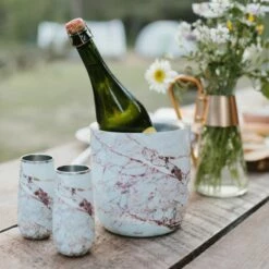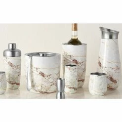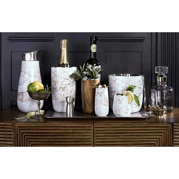 Inspired by nature, the Elements Collection features a shiny, high-gloss finish that mimics the lustre and sheen of organic materials culled from ancient quarries.Keep ice for cocktails cooler longer or chill your favorite bottle of Champagne with ease. Offered in our bestselling styles, this sophisticated condensation-free ice bucket—and easy-to-use tongs—makes your bar cart extra special.